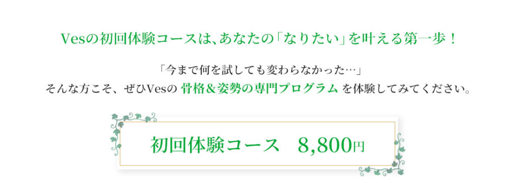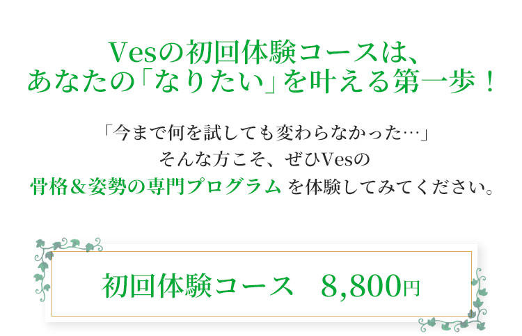 いいえ、無理な勧誘は一切ございません。初回体験では、まずご自身の体の状態を知り、Vesのアプローチを体感していただくことを大切にしています。今後のプランについてのご提案はいたしますが、ご自身で納得された上でご検討いただければ大丈夫です。